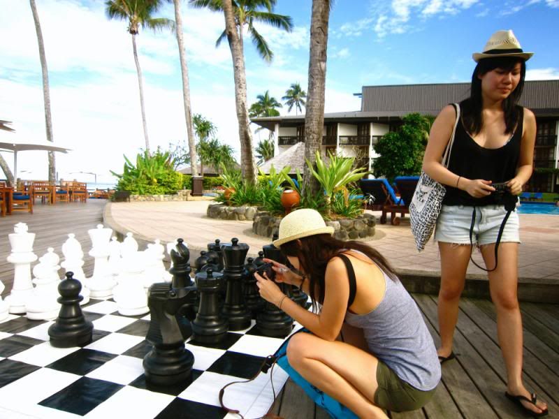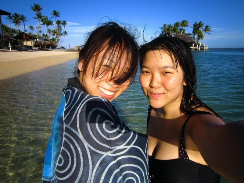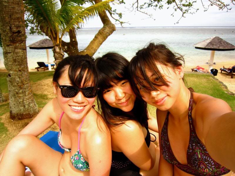So the last time I blogged, I lied. I knew I would be able to get through the heater-less winter, because my friends and I had planned a little getaway since summer! Yes, off to Fiji we went. Once Uni was officially over with the end of classes last week, the three of us (Deb and Yvette) packed off to Fiji for some R&R. We flew VAustralia, which I must say was rather nice, not all dodgy like VirginBlue, and the inflight entertainment system was a touchscreen, and you could chat seat to seat, which was pretty neat. So after a four hour flight we got a taxi, which was one of those yellow things which looked as if it came straight out of the 1970s, and I half suspect it was, and began our winding 1.5hr ride to Viti Levu on the mainland, where our resort was. The first day was cloudy and the sun was already setting as we got to our rooms, so there wasn't much impact upon first sight, but the next morning was clear and absolutely glorious! We did a bit of kayaking and some snorkelling (where I cut my foot on some coral because I was panicky the first day in the water), and left the resort for a village tour, and ate lovely meals. It was a perfect holiday, if only just to get away from the cold and rain in Sydney and the idea of impending doom in the form of exams.