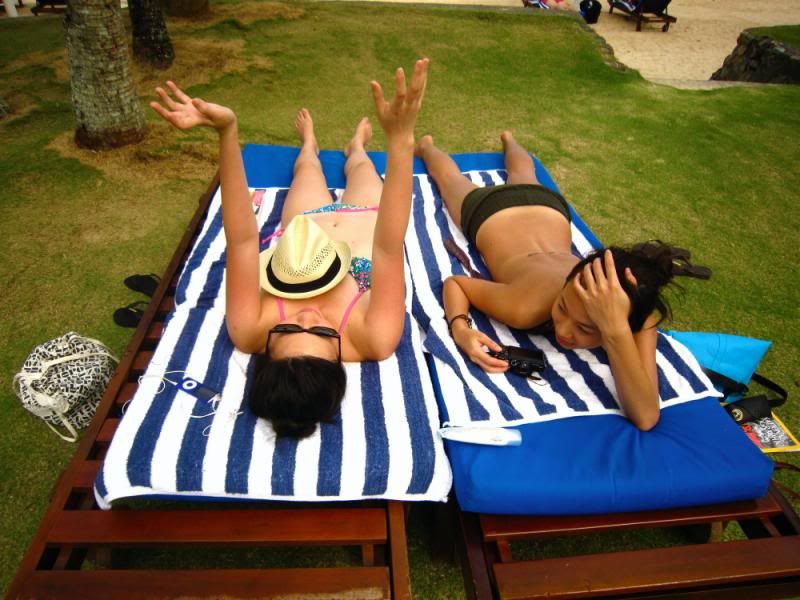 So after snorkelling we kinda beached ourselves and just bummed around and read our books/magazines. They wanted full exposure to the sun and they got it! Have no clue what deb is doing here....