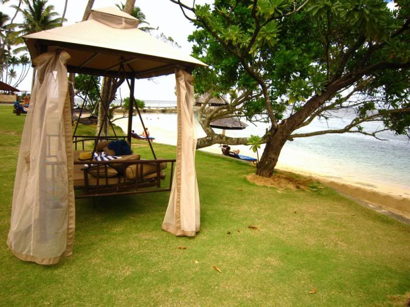 I have been well trained by my mother in avoiding the sun (sun spots and skin cancer, she says) so I hid in this cabana which was a swing and was really creaky.